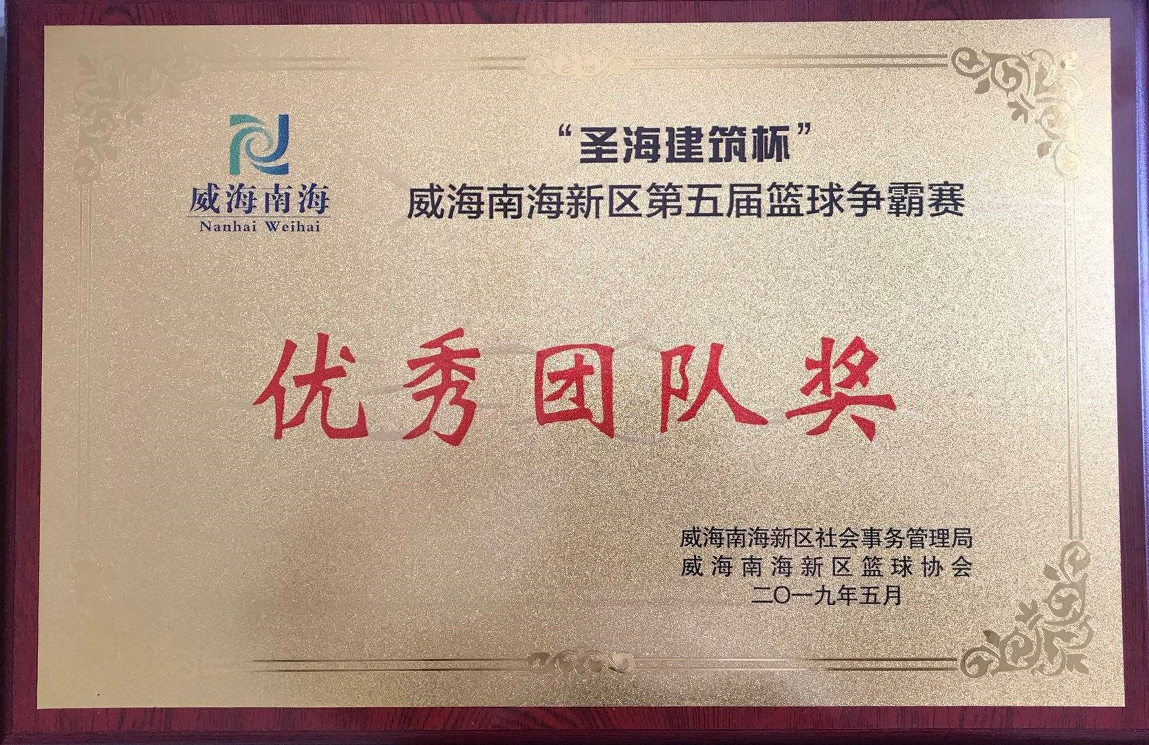 8xbet体育喜获“圣海建筑杯”威海南海新区第五届篮球争霸赛优秀团队奖