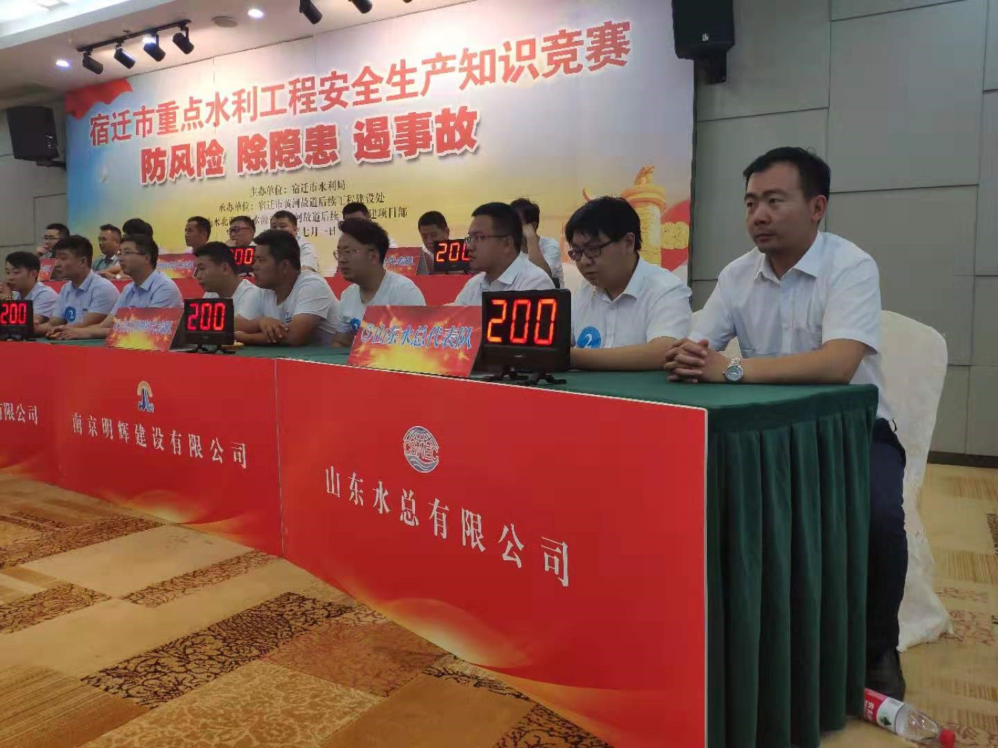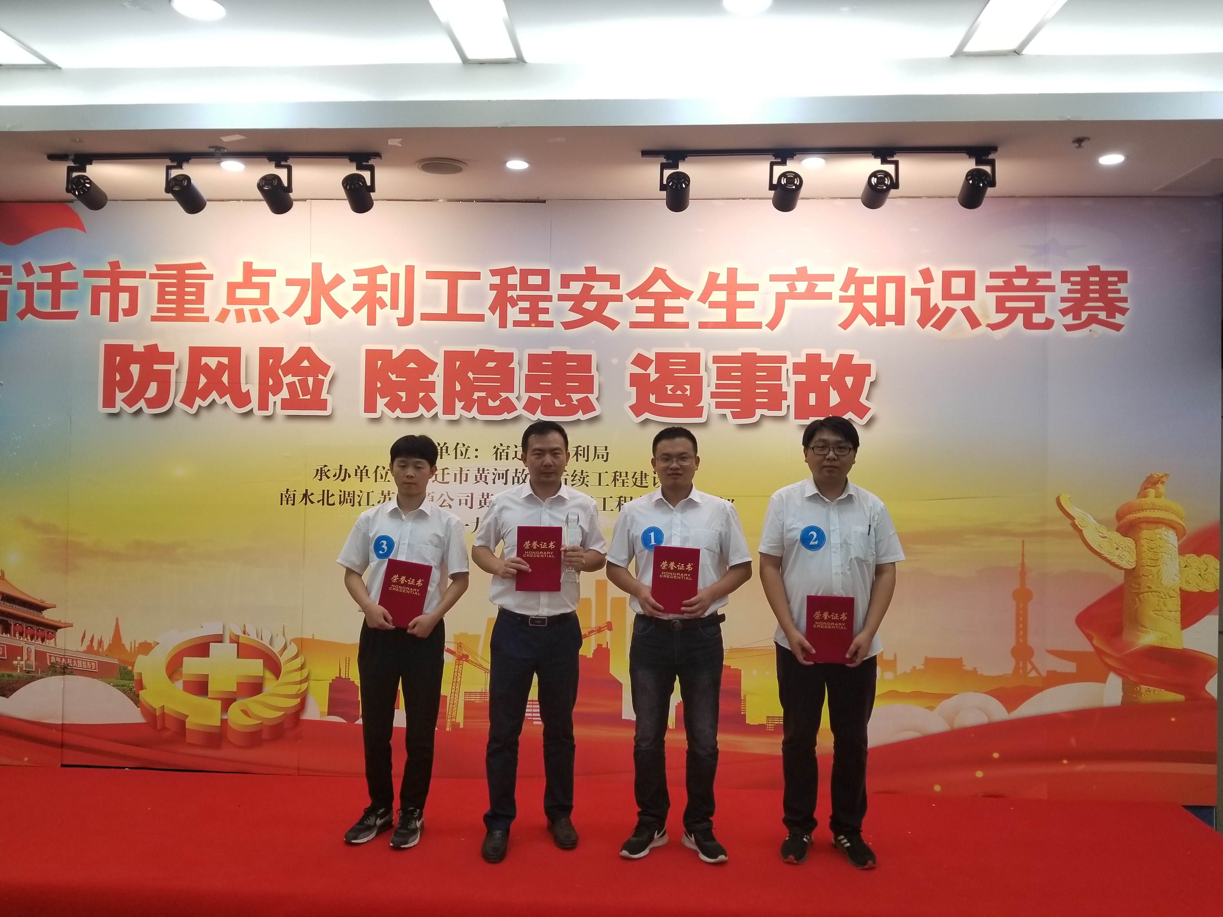 为深入推进安全生产月活动开展,普及安全生产法律知识,提高安全生产意识,筑牢安全生产防线,宿迁市水利局组织开展了“宿迁市重点水利工程安全生产知识竞赛”活动。我8xbet体育宿迁市黄河故道后续工程施工3标项目经理部派出代表队经海选、初赛、复赛多轮角逐,代表8xbet体育参加了总决赛,经过激烈角逐,以优异的成绩荣获第二名,展示了8xbet体育职工的良好风采。
