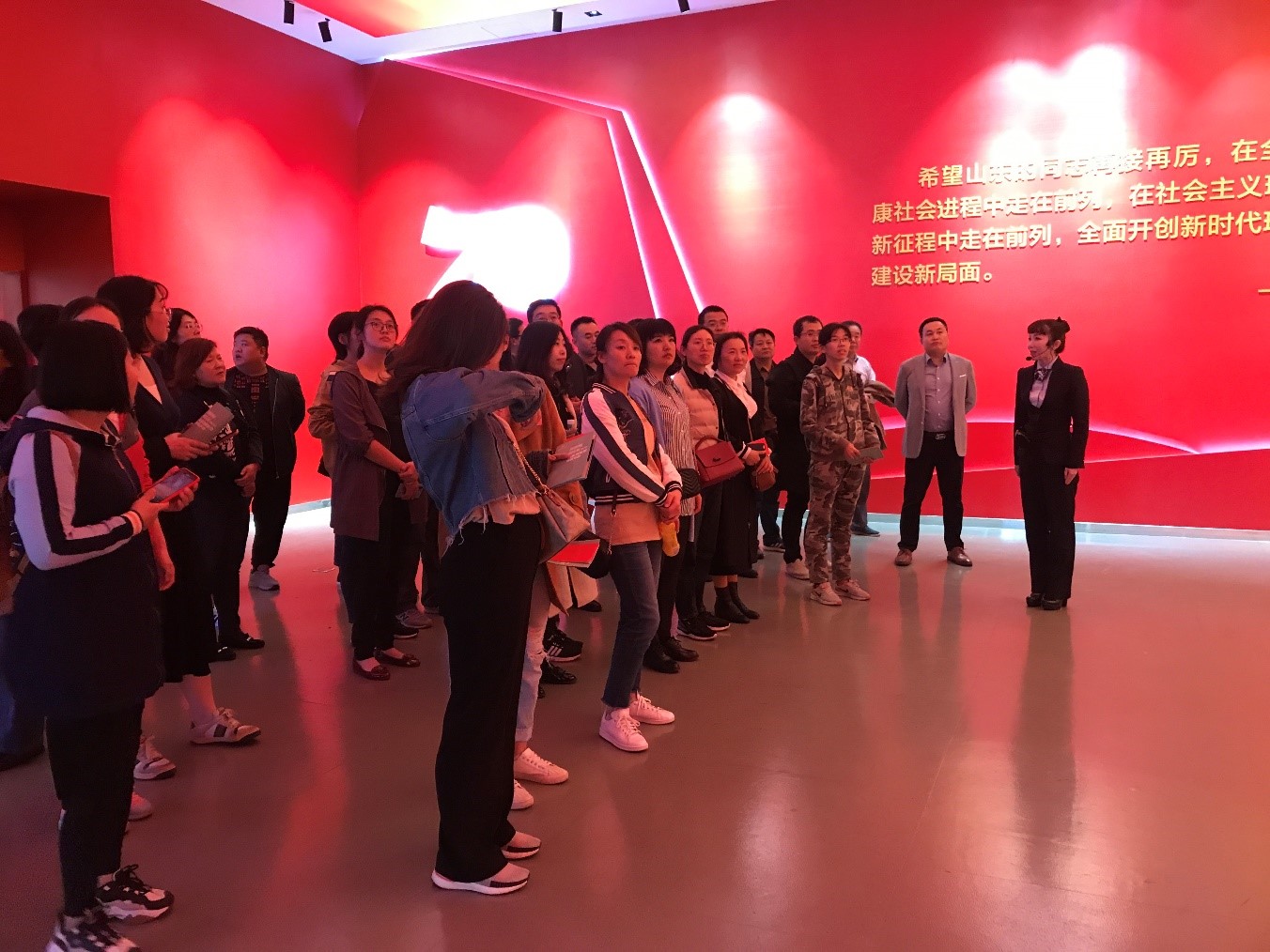 通过此次观展,同志们现场感受到新中国成立以来特别是改革开放以来党和国家事业发展的伟大成就,极大激发了爱国之情和强国之志。大家表示,山东70年的发展变化也是新中国成立70周年历史变迁的缩影,充分彰显了中国共产党领导的政治优势和中国特色社会主义制度的巨大优越性。山东70年取得的成就,祖国70年的光辉历程不但激发了自己的自豪感,荣耀感,更激励自己牢记初心使命,立足