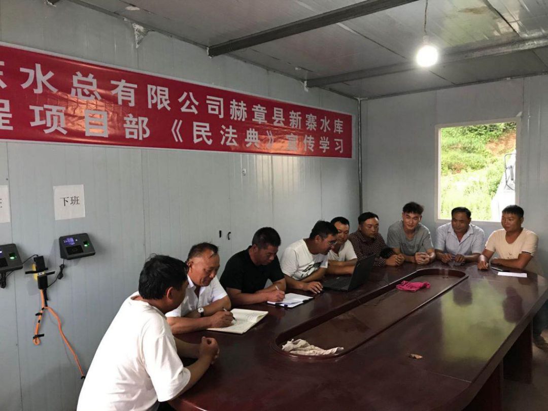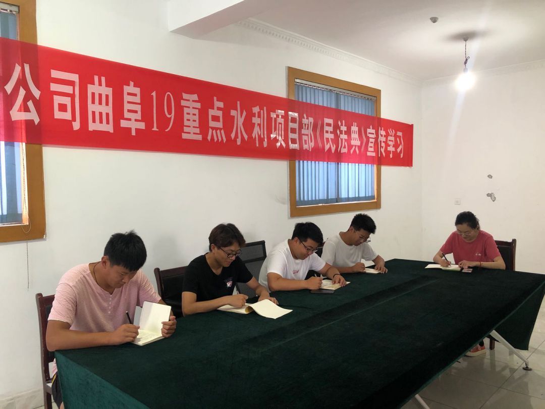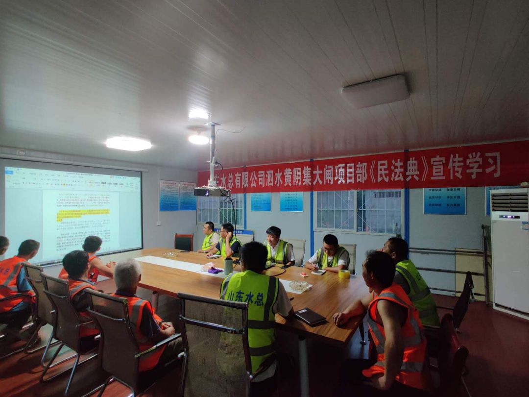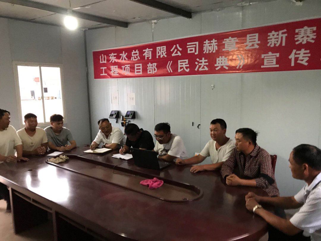 为响应总8xbet体育法务与清收办公室组织的“《民法典》宣传月”活动, 7月23日晚上,泗水县黄阴集大闸除险加固工程项目经理部在工地会议室召开《民法典》学习宣贯会议、2020年7月25日,赫章县新寨水库工程项目部全体成员在会议室进行《民法典》宣传学习、曲阜2019年重点水利建设项目施工 一标段在2020年7月28日进行《民法典》学习、平塘县擦耳岩水库工程项目2020年7月29日进行《民法典》学习、宣贯情况汇报如下: