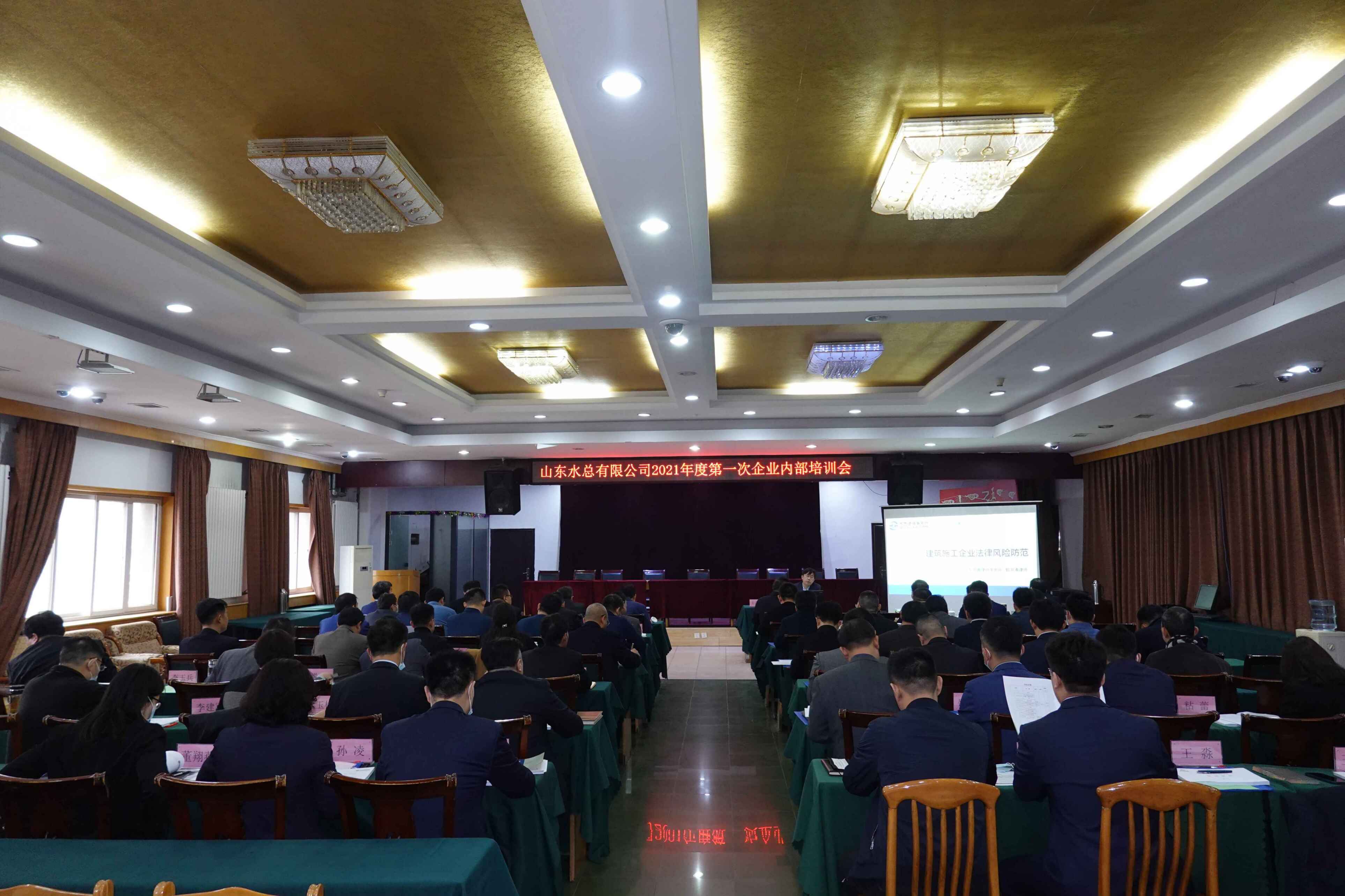 2021年3月13日,8xbet体育在总部二楼多功能会议厅召开2021年度第一次企业内部培训会,参会人员包含齐鲁律师事务所的特约讲师郭洪涛律师、8xbet体育领导班子、各权属单位和8xbet体育各部室的中层副职以上人员共57名。