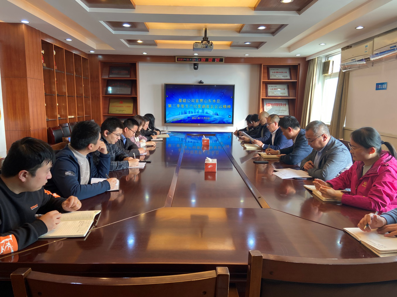 11月3日下午,基础工程有限8xbet体育在七楼会议室召开第三季度生产经营调度会议暨宣贯会议。总经理朱兆同主持会议并讲话,8xbet体育驻济人员参加了会议。
