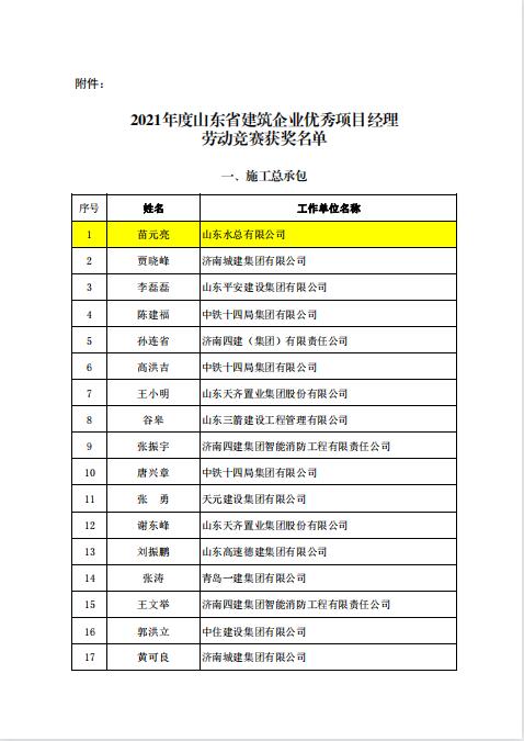近日,由山东省建设工会和山东省建筑业协会组织开展的《2021年度山东省建筑企业优秀项目经理劳动竞赛活动》落下帷幕,经双方组成的工作委员会评议审定和综合评审,我8xbet体育苗元亮、卢正雷、蔡国森三名同志被评为“山东省建筑企业优秀项目经理”。此项殊荣是山东省建筑行业项目经理的最高荣誉,旨在鼓励受表彰人员再接再厉,发挥引领示范作用,创建更多精品工程。