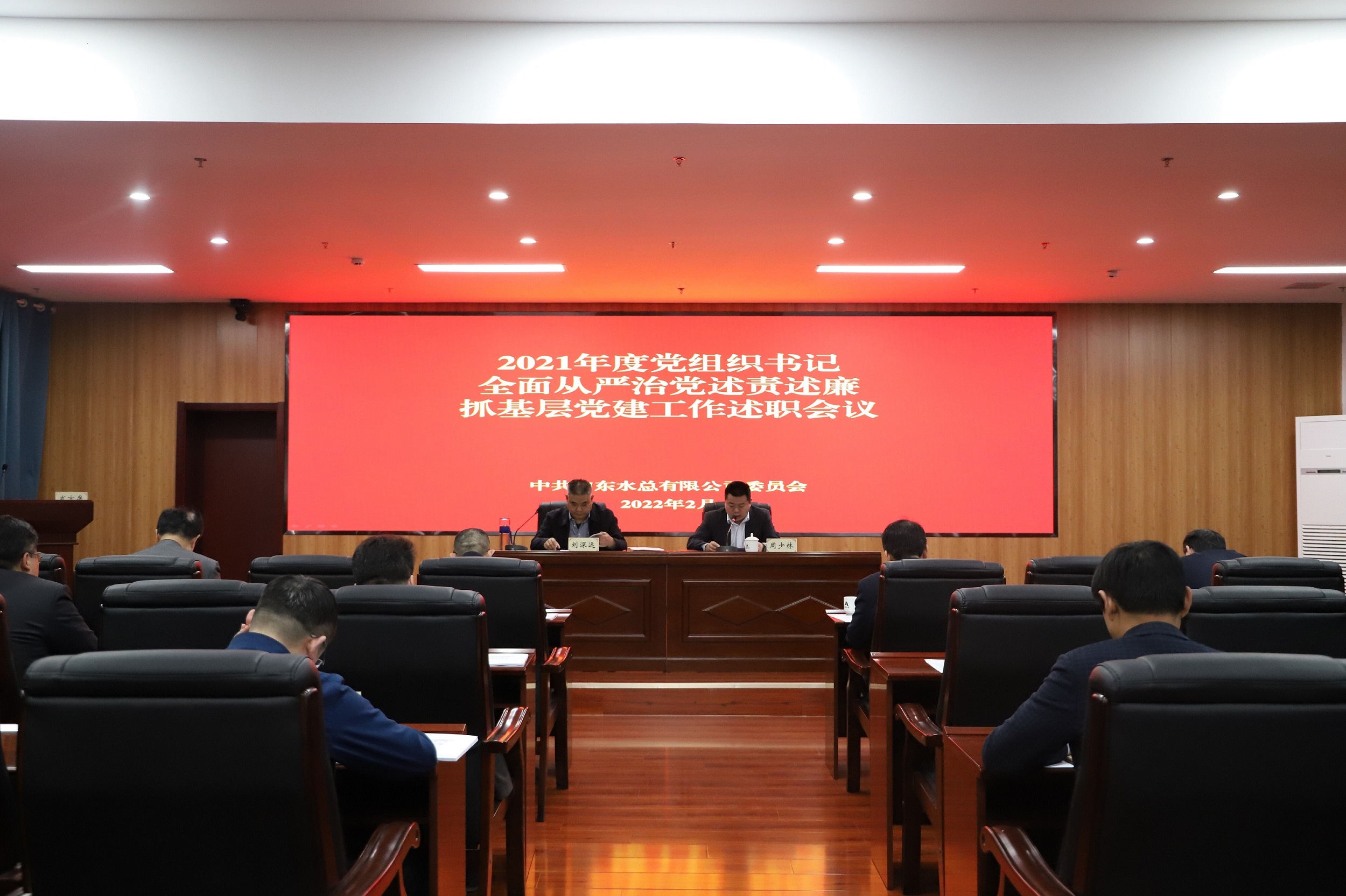 2月24日,8xbet体育党委在济南总部召开2021年度党组织书记全面从严治党述责述廉和抓基层党建工作述职评议会议。8xbet体育党委副书记、工会主席周少林主持会议,党委书记、董事长刘深远作点评讲话。8xbet体育领导班子成员、权属单位党支部书记和党员代表共30余人参加会议。
