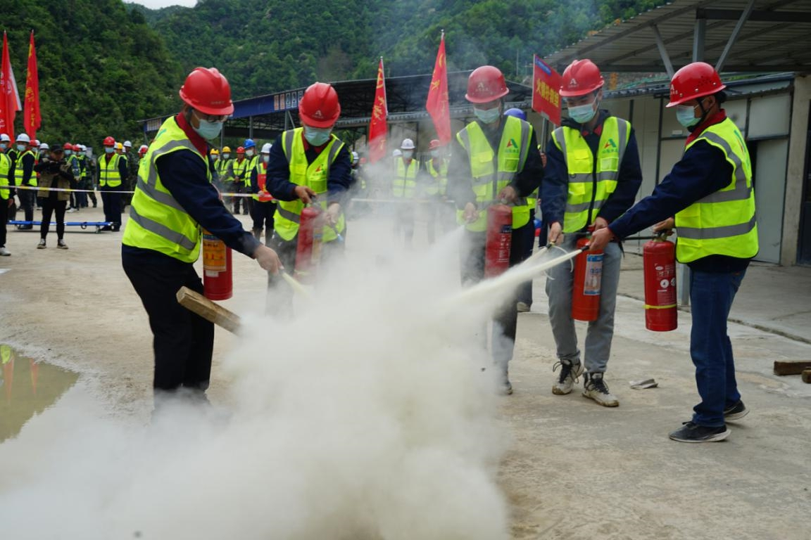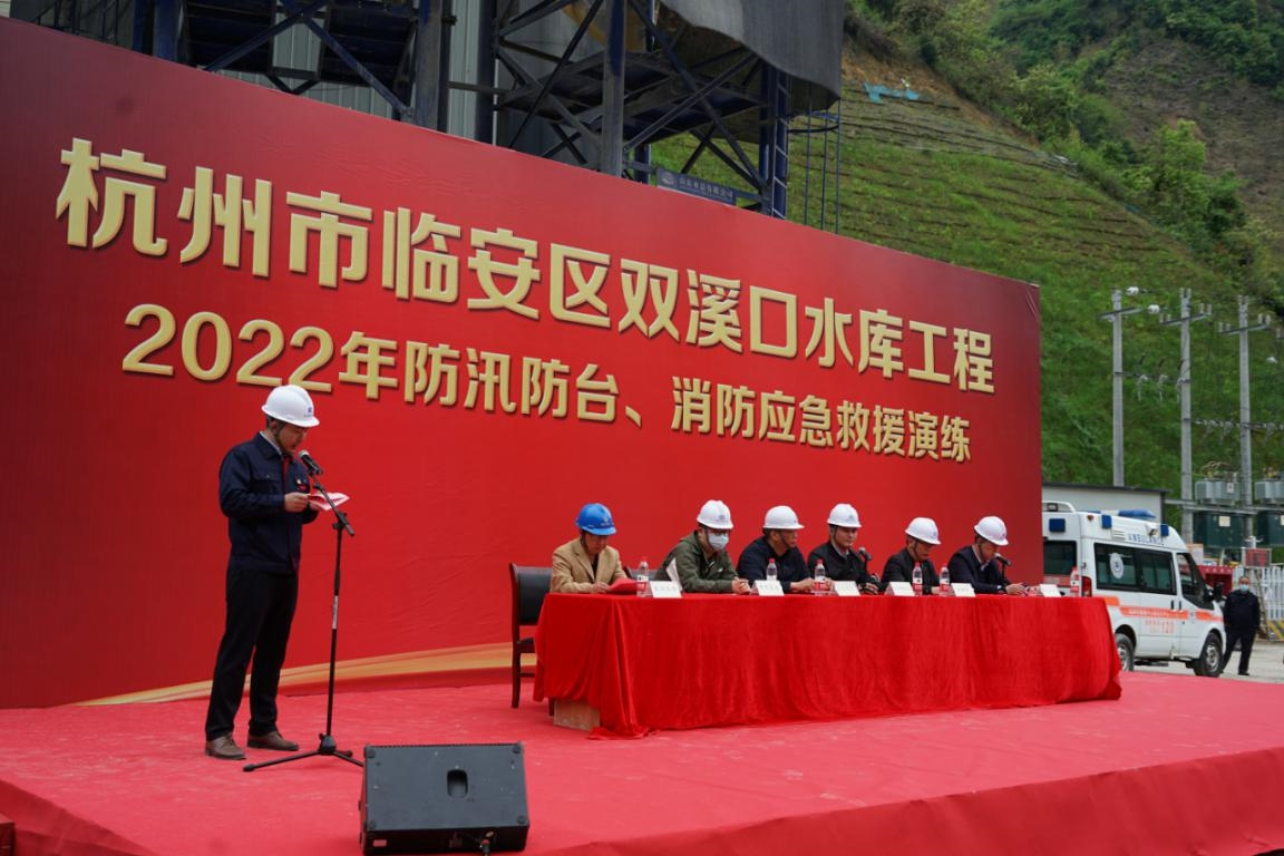 浙江省2022年汛期即将来临,为了确保工程安全度汛、提高参建人员风险防范意识和应急处置能力,4月14日上午,杭州鲁润8xbet体育组织杭州双溪口水库工程各参建单位人员开展2022年防汛防台和消防应急救援演练。杭州市水利质监中心、临安区水利水电局、清凉峰镇人民政府、双溪口水库工程指挥部领导到场观摩指导。