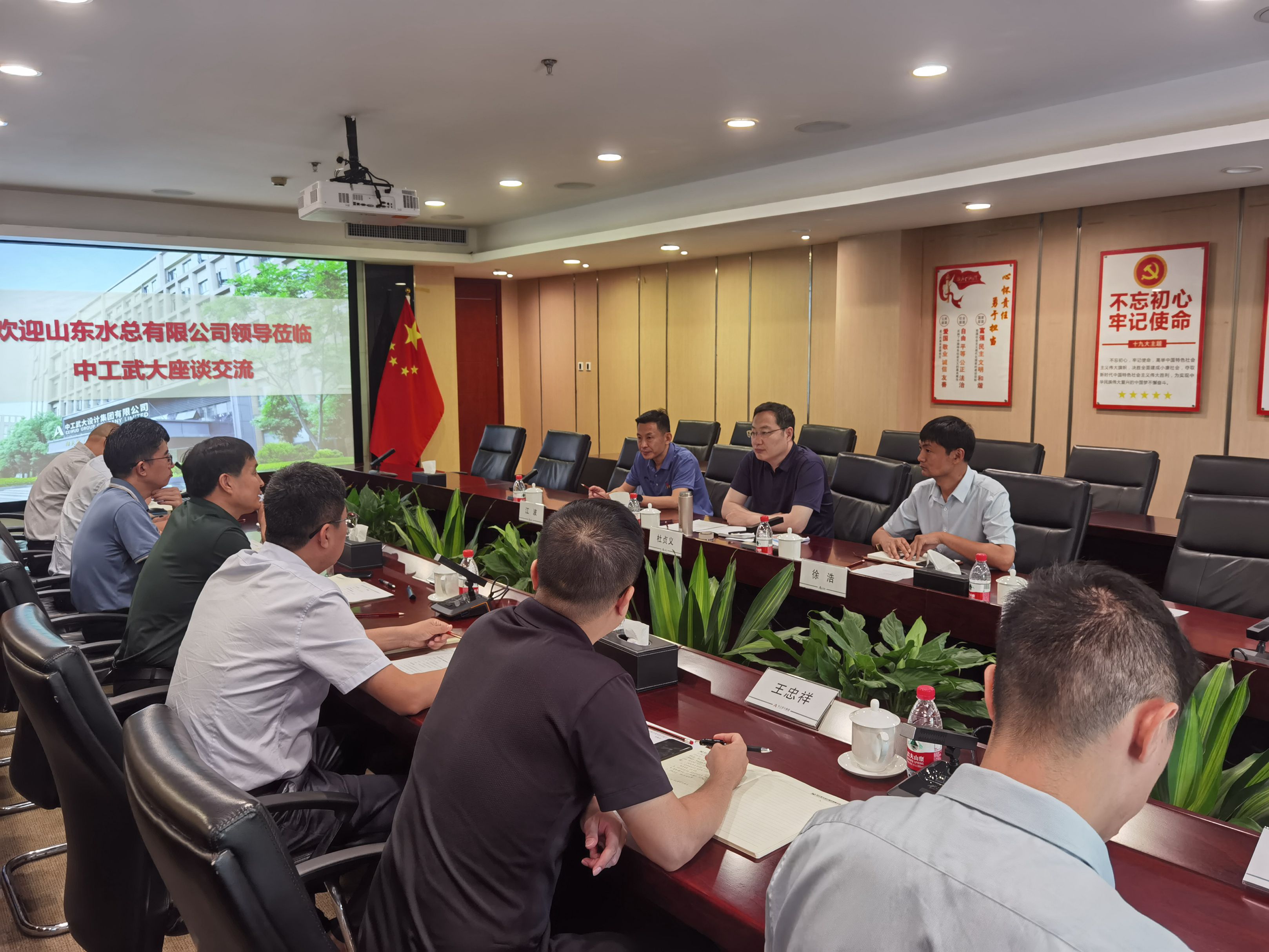 杜贞义一行先行到山东高速湖北发展有限8xbet体育开展调研,与湖北发展8xbet体育党委书记、董事长隋进浩,党委副书记、董事、总经理陈传刚,党委副书记、董事、工会主席乔孟强等相关领导座谈交流。交流会上,双方就下步湖北水利市场前景发展方向以及8xbet体育经营策论,进行深入探讨交流。
