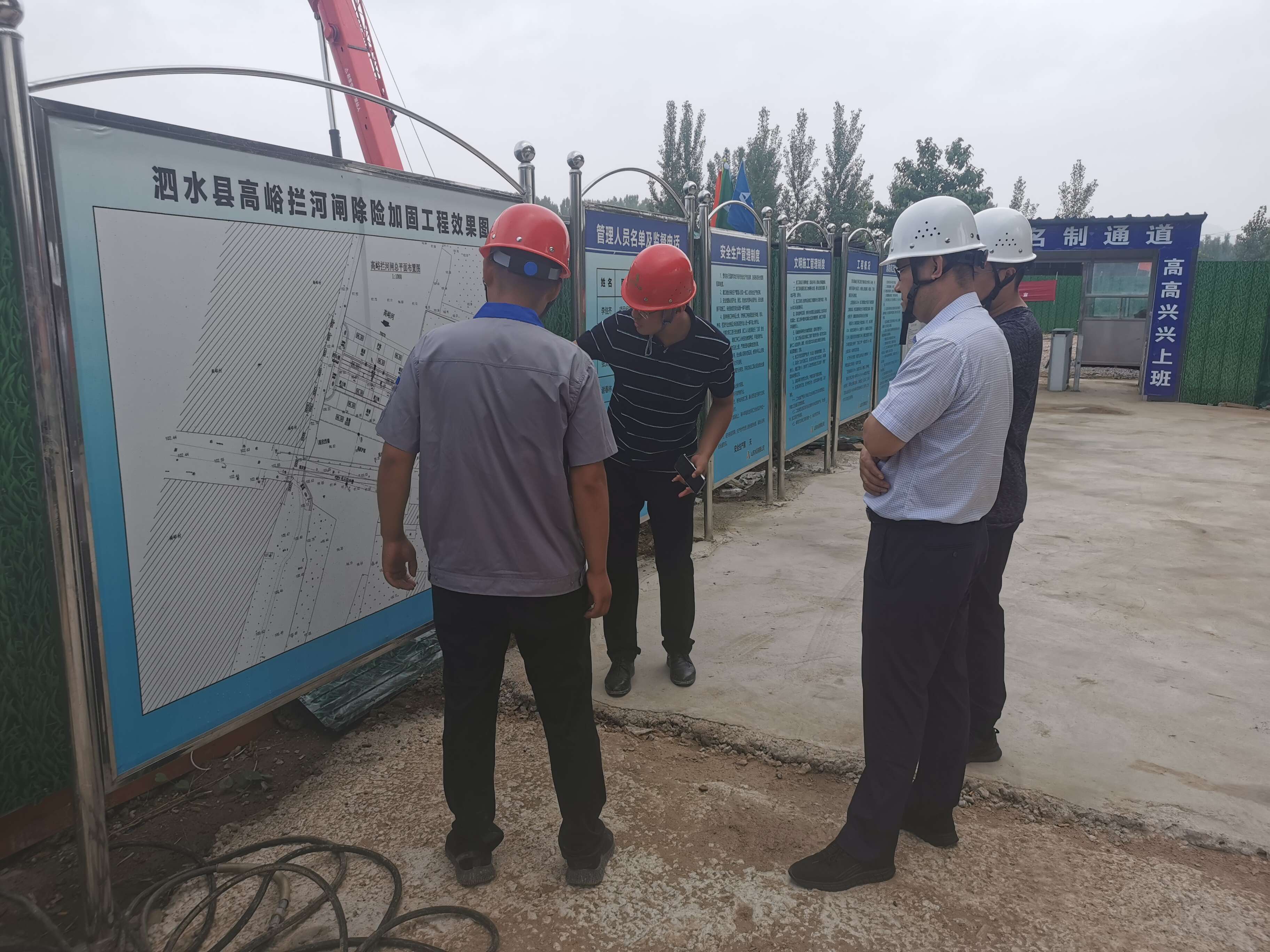 7月13日,8xbet体育安全总监郭法文、安全管理部部长向建等一行到第七分8xbet体育泗水县高峪拦河闸除险加固工程开展安全检查工作,第七分8xbet体育副总经理常征陪同检查。