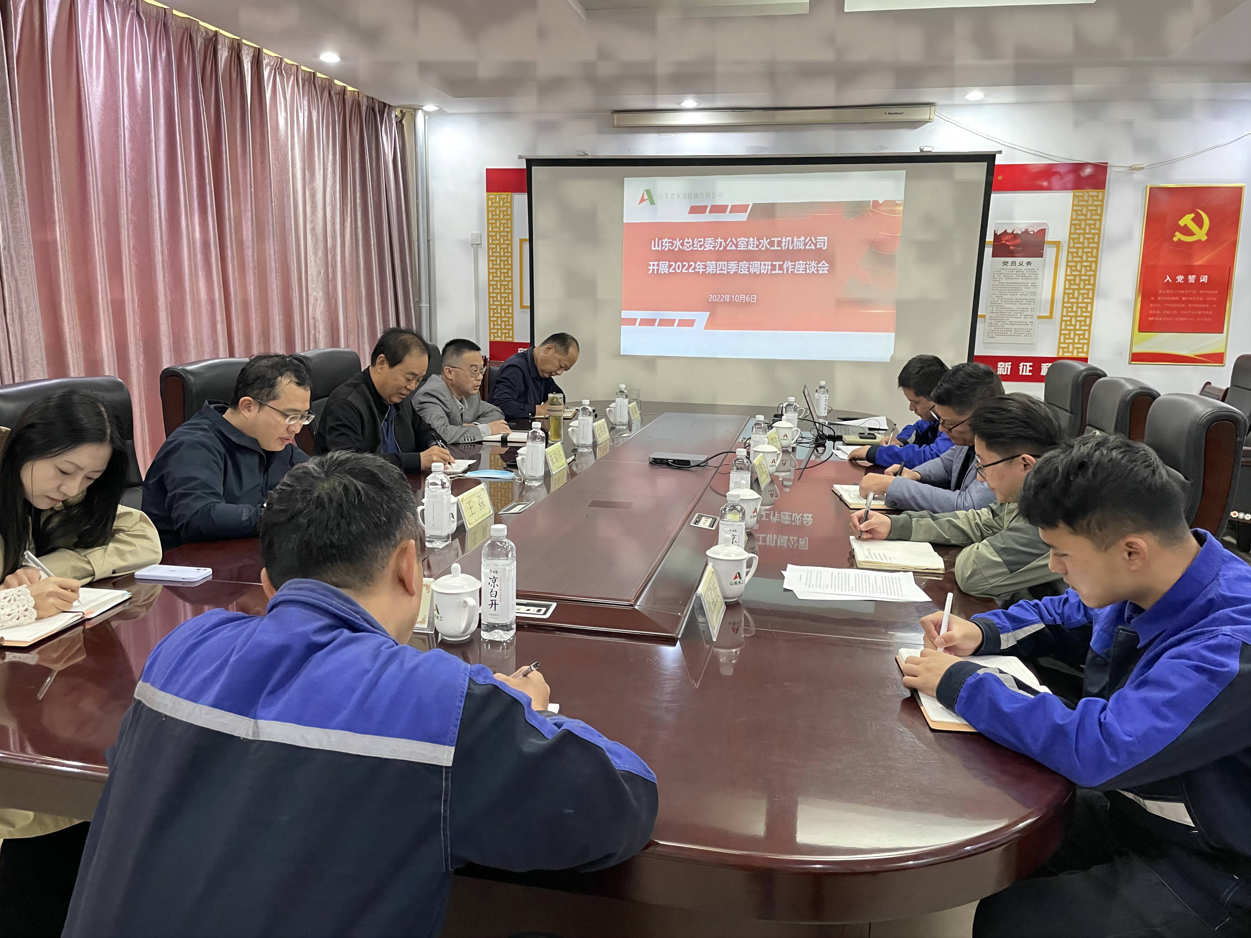 10月5日,调研组首先在水工机械8xbet体育三楼召开座谈会,听取水工机械8xbet体育机料采购、废料处理、成本控制等情况汇报,以及8xbet体育在各项工作中遇到的难题及下一步工作措施,对有关问题给予现场指导。调研组指出,8xbet体育目前各项任务还十分艰巨,面对错综复杂的形势和艰巨繁重任务,要深入贯彻上级党委的总体要求,坚决落实集团8xbet体育的各项决策部署,动员全体干部职工,积极应对安全环保、生产经营、产品质量“三重”大战大考,坚定信心、攻坚克难、苦干实干。随后,调研组一行实地查看生产车间,了解项目进展,认真检查现场安全生产落实情况,听取职工诉求和意见建议。
