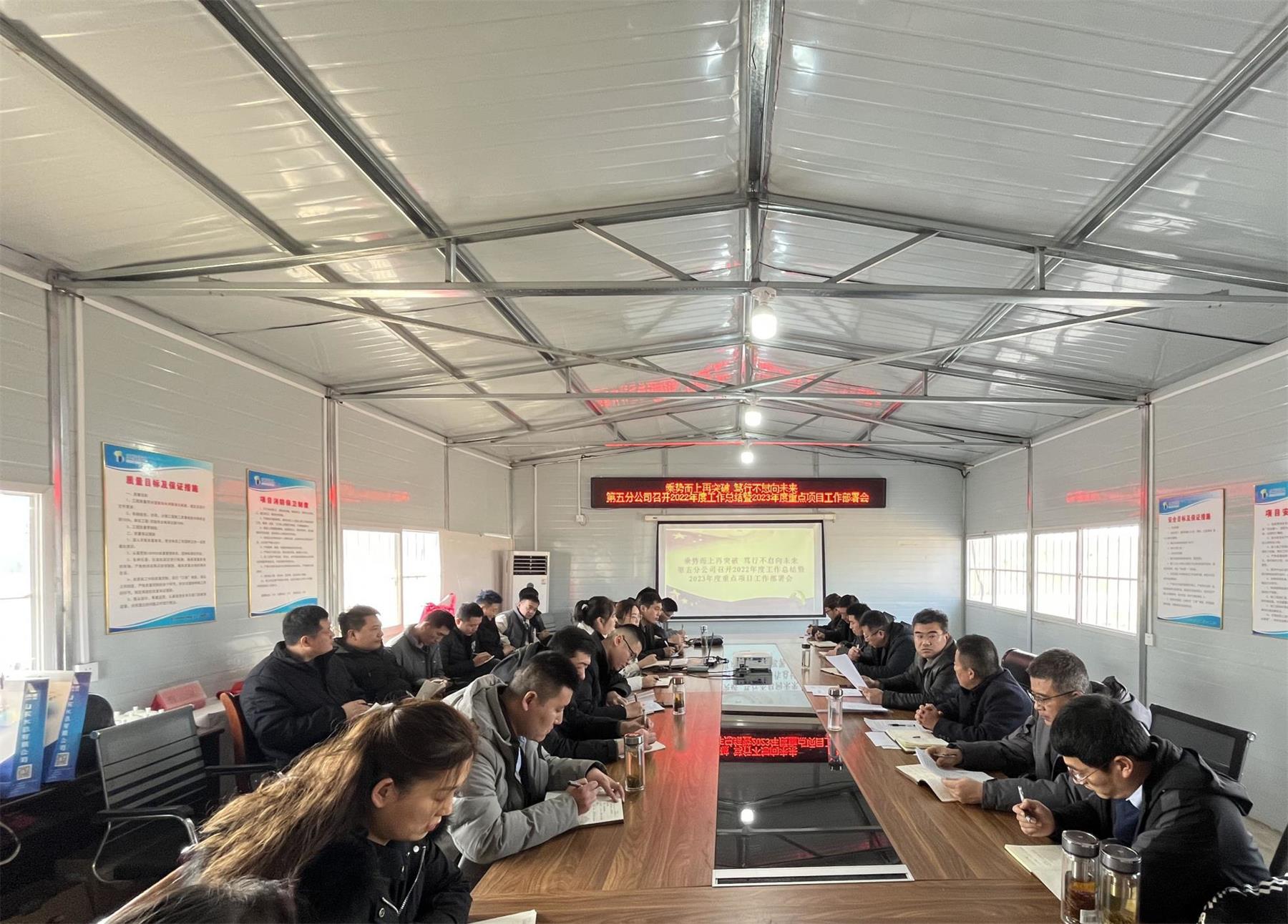 1月30日,第五分8xbet体育在无棣黄瓜岭项目部召开2022年度工作总结暨2023年度重点项目工作部署会议,上好“开工第一课”。8xbet体育在鲁职工参加会议,会议由党支部书记、总经理蔡国森主持。