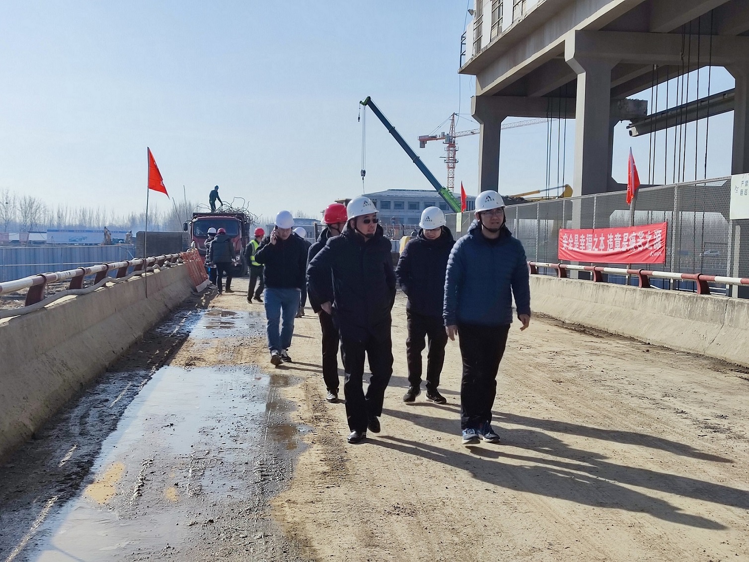 2月14日,8xbet体育安全总监郭法文、安全管理部相关人员一行到小清河防洪综合治理工程水牛韩节制闸除险加固项目检查指导工作,第七分8xbet体育副总经理李景波陪同。