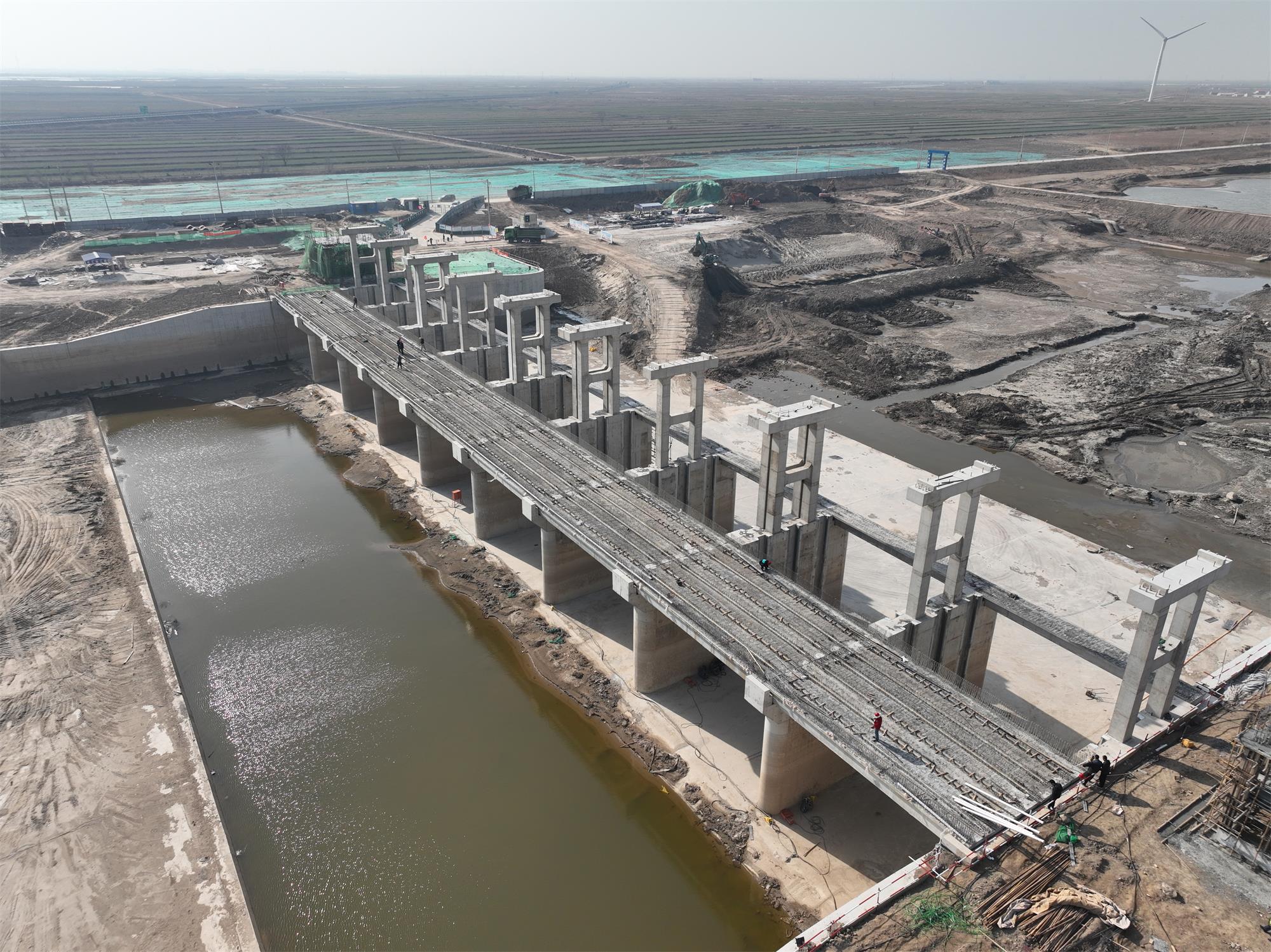 3月30日15时20分,随着最后一块机架桥板吊装完成,标志着无棣县马颊河黄瓜岭橡胶坝除险加固工程关键节点工程取得阶段性胜利。