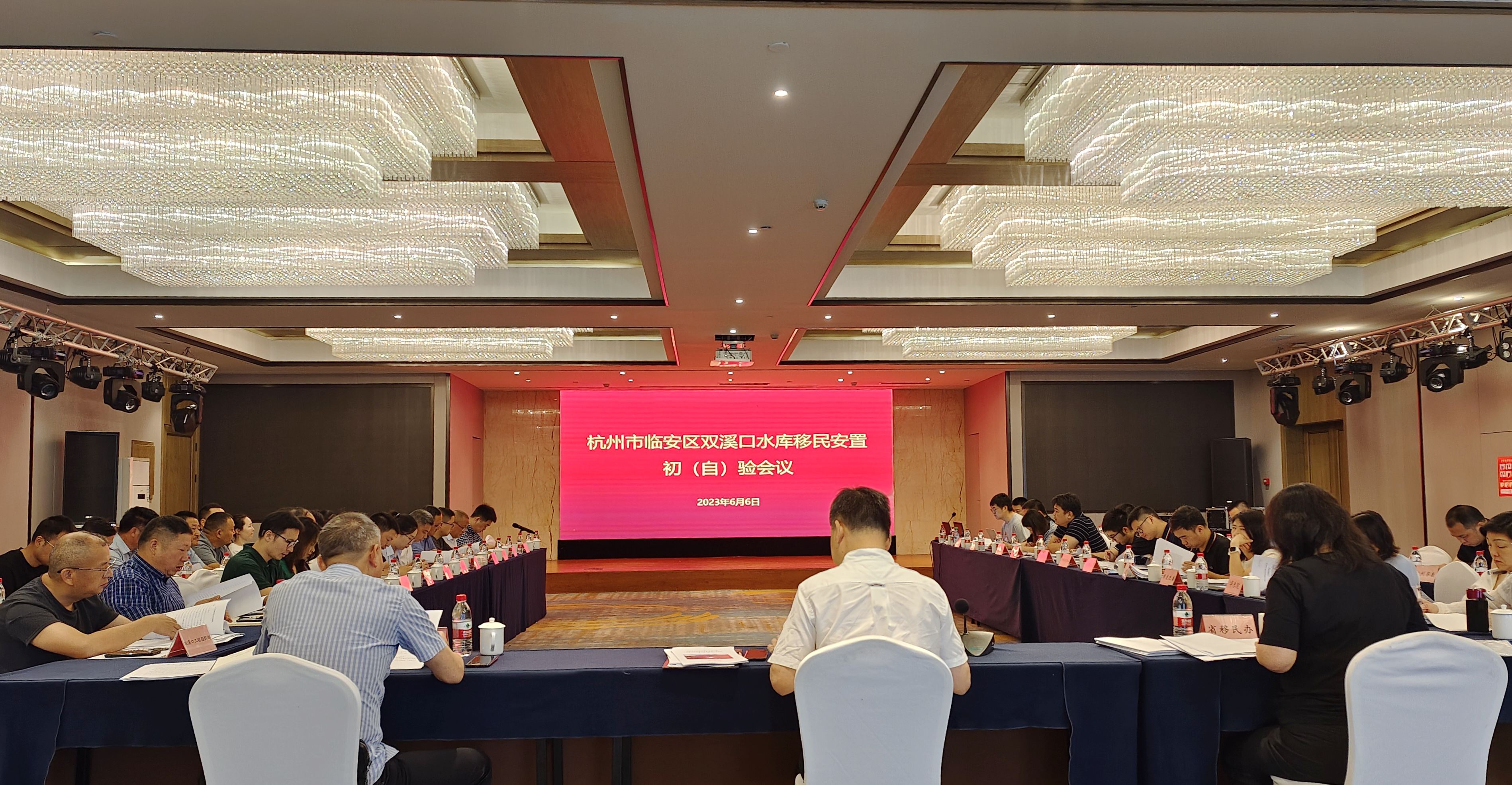 6月5日至6日,杭州市临安区双溪口水库工程下闸蓄水阶段移民安置初(自)验会议在临安区召开,省移民办、市交通运输局、市林水局、区政府、区水利水电局、双溪口工程指挥部、杭州鲁润水电开发有限8xbet体育等40家单位参加了会议。