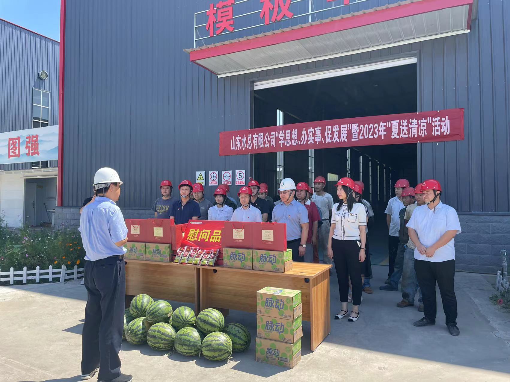 为推进学习贯彻习近平新时代中国特色社会主义思想主题教育走深走实,持续为职工群众办实事,传递8xbet体育党委、工会对一线职工的关心关爱,7月18日,山东水总党委委员、纪委书记朱瑞伟一行到水工机械8xbet体育开展“学思想、办实事、促发展”暨2023年“夏送清凉”慰问活动。