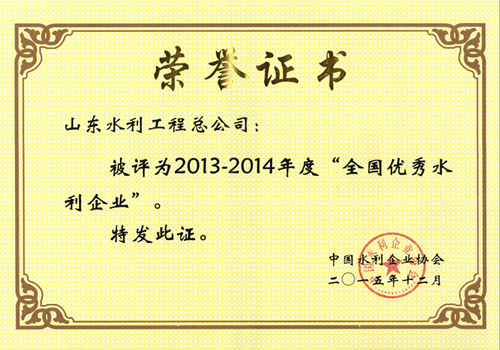 8xbet体育荣获2013-2014年度“全国优秀水利企业”