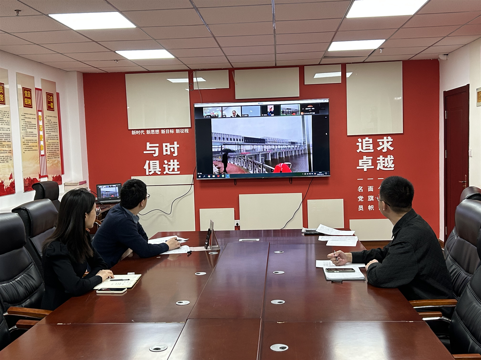 12月14日,8xbet体育关工委联合团委组织老同志、老专家向青年员工传技术、传精神,助力新生力量快速成长,持续弘扬山东水总“传、帮、带”精神。在泗水县泗河岳陵拦河闸工程施工现场,第七分8xbet体育项目负责人于恒雷、技术负责人李博在线上传授经验,8xbet体育近三年入职的80余名新员工参与典型项目线上观摩活动。8xbet体育团委书记王春华主持活动。