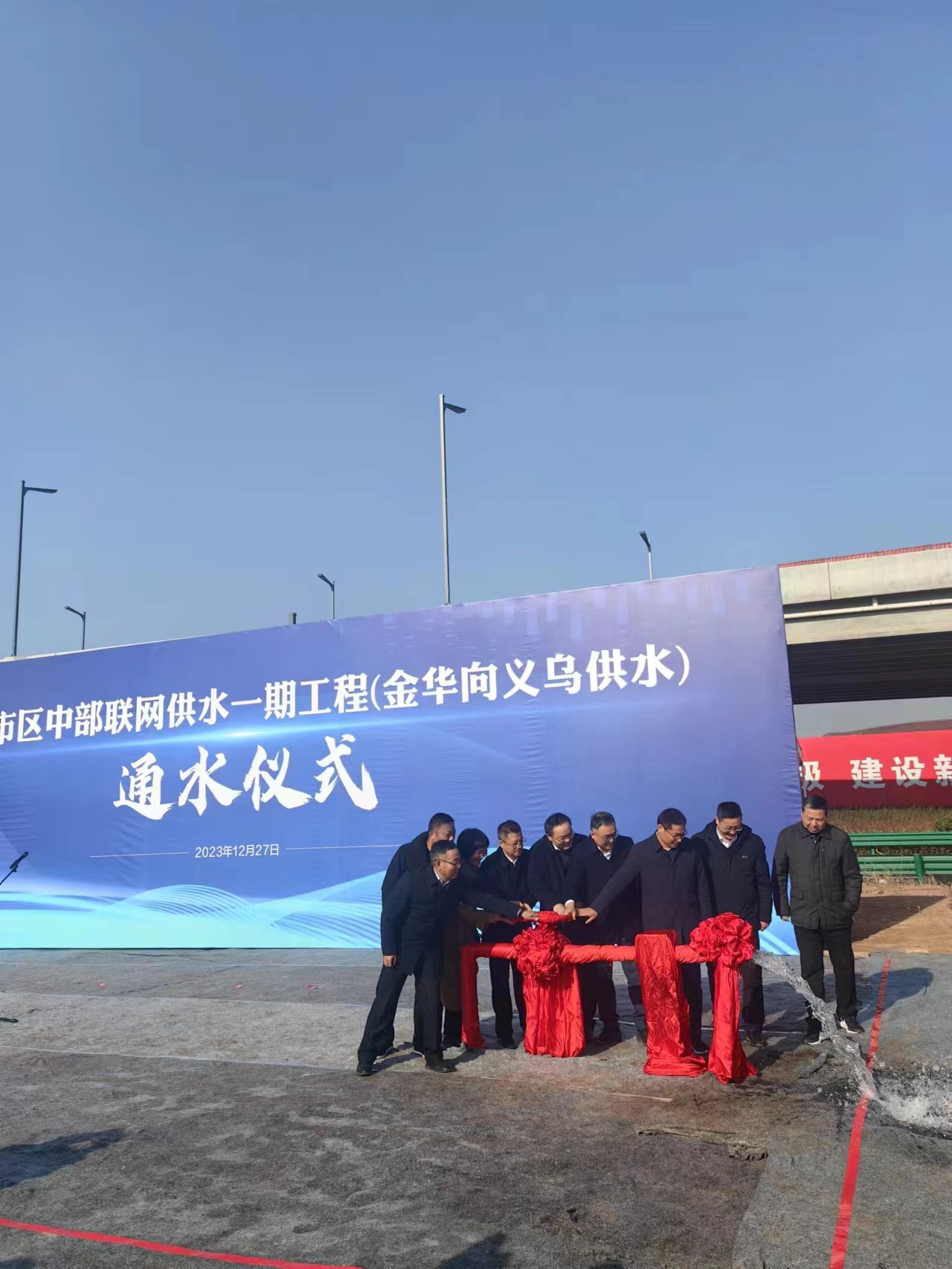 12月27日上午,在金义都市区中部联网一期工程中央大道与华东街交叉处,随着一股清泉从供水管道口喷涌而出,由第六分8xbet体育承建的金华—义乌供水工程实现正式通水。金华市政府、金华市城投集团等相关单位共同见证了该通水仪式。