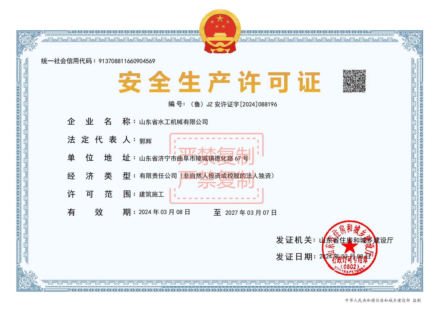 一季度,水工机械8xbet体育制定《山东省水工机械有限8xbet体育重要事项督办管理办法》对8xbet体育年度及日常各项重要事项进行督办并及时调整工作计划和措施,确保8xbet体育各项工作稳步推进。2023年12月底取得钢结构工程专业承包贰级资质,2024年3月7日取得安全生产许可证,为8xbet体育进一步拓展业务,持续保障安全生产打下基础。