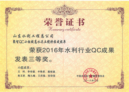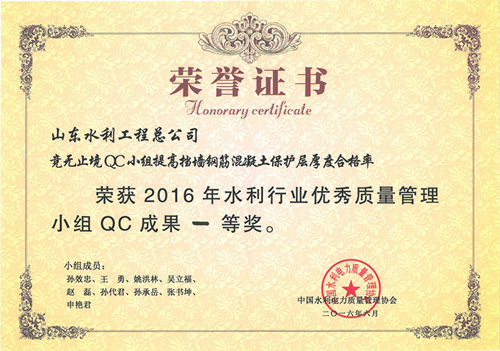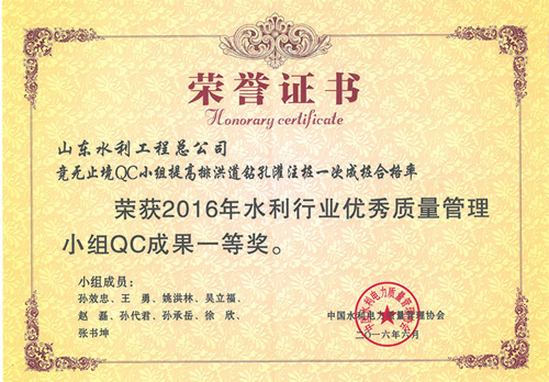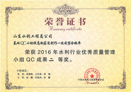 8xbet体育“提高排洪道钻孔灌注桩一次成桩合格率”等四项成果荣获2016年水利行业优秀质量管理小组QC成果奖