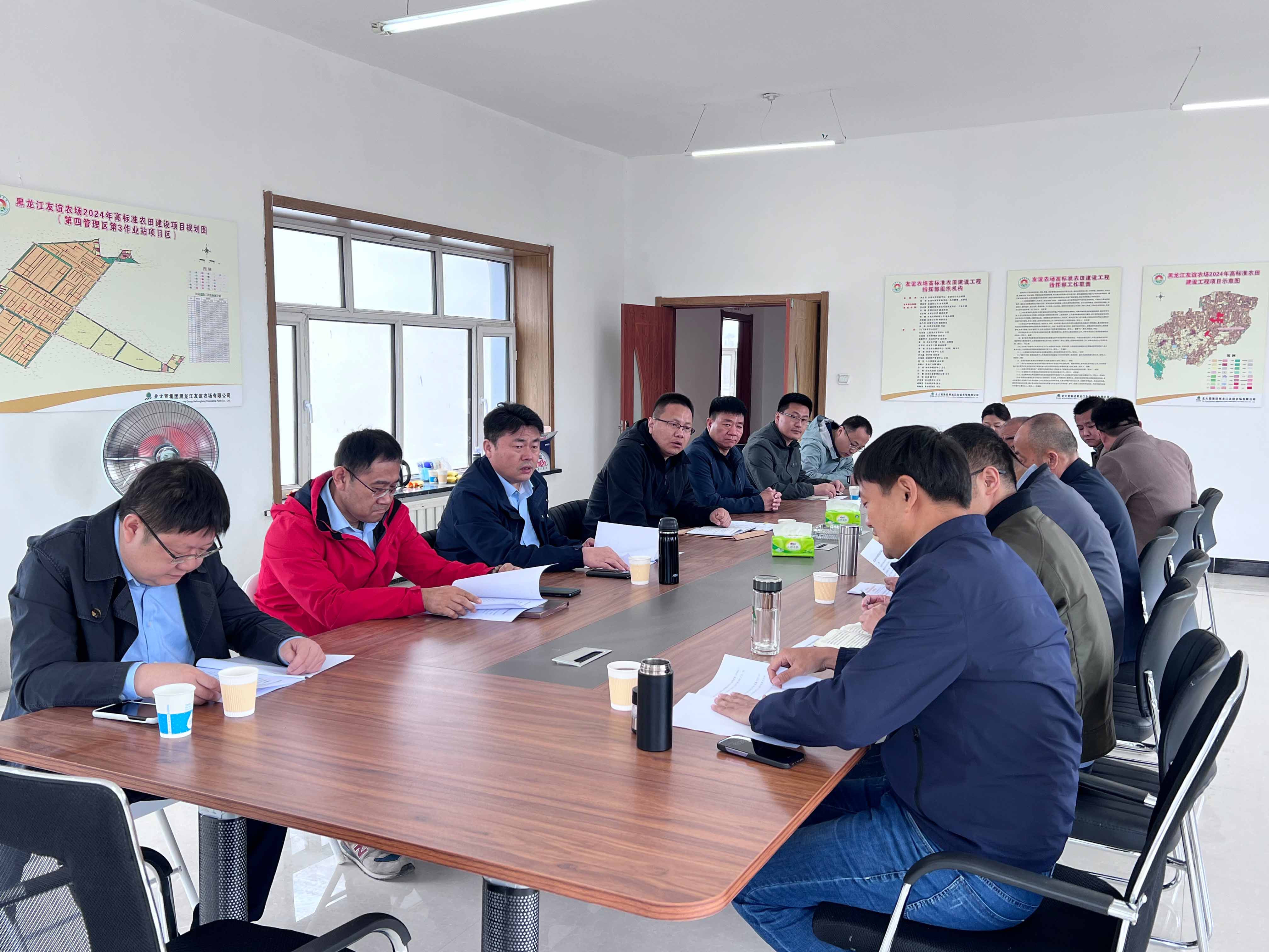 裴文晶一行首先来到黑龙江省粮食产能提升项目了解项目进展,并同项目部一线人员进行交流。随后,调研组来到黑龙江友谊农场2024年高标准农田建设项目,同北大荒集团黑龙江友谊农场有限8xbet体育副总经理樊庆华进行会谈。双方对当前项目的总体进度、面临的机遇和挑战进行了分析和研讨,并对下一步如何加强合作进行深入交流,展望两家省级国有企业合作的未来,努力发挥山东水总基础建设和北大荒集团农业生产运营的优势,打造出“1+1>2”的效果。