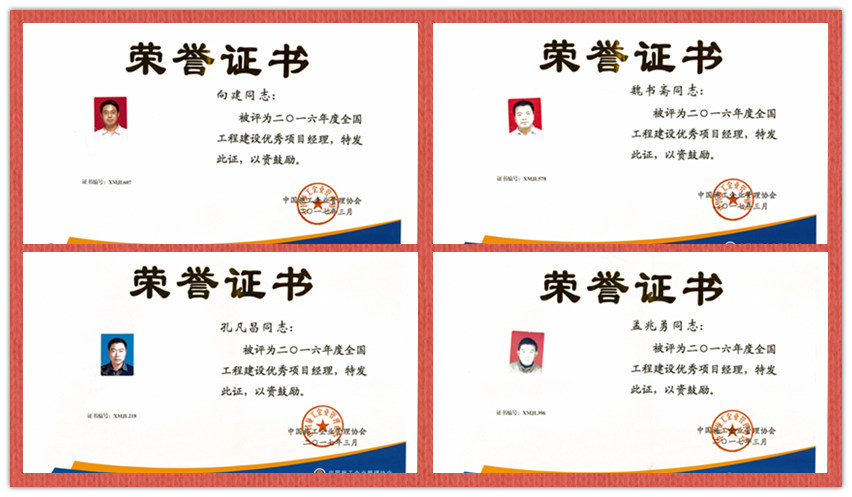 8xbet体育向建等四名同志被评为2016年度全国工程建设优秀项目经理