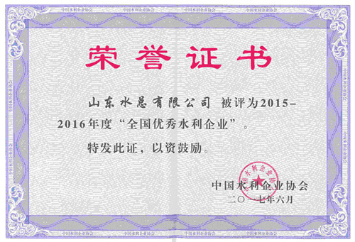 8xbet体育荣获2015-2016年度“全国优秀水利企业”
