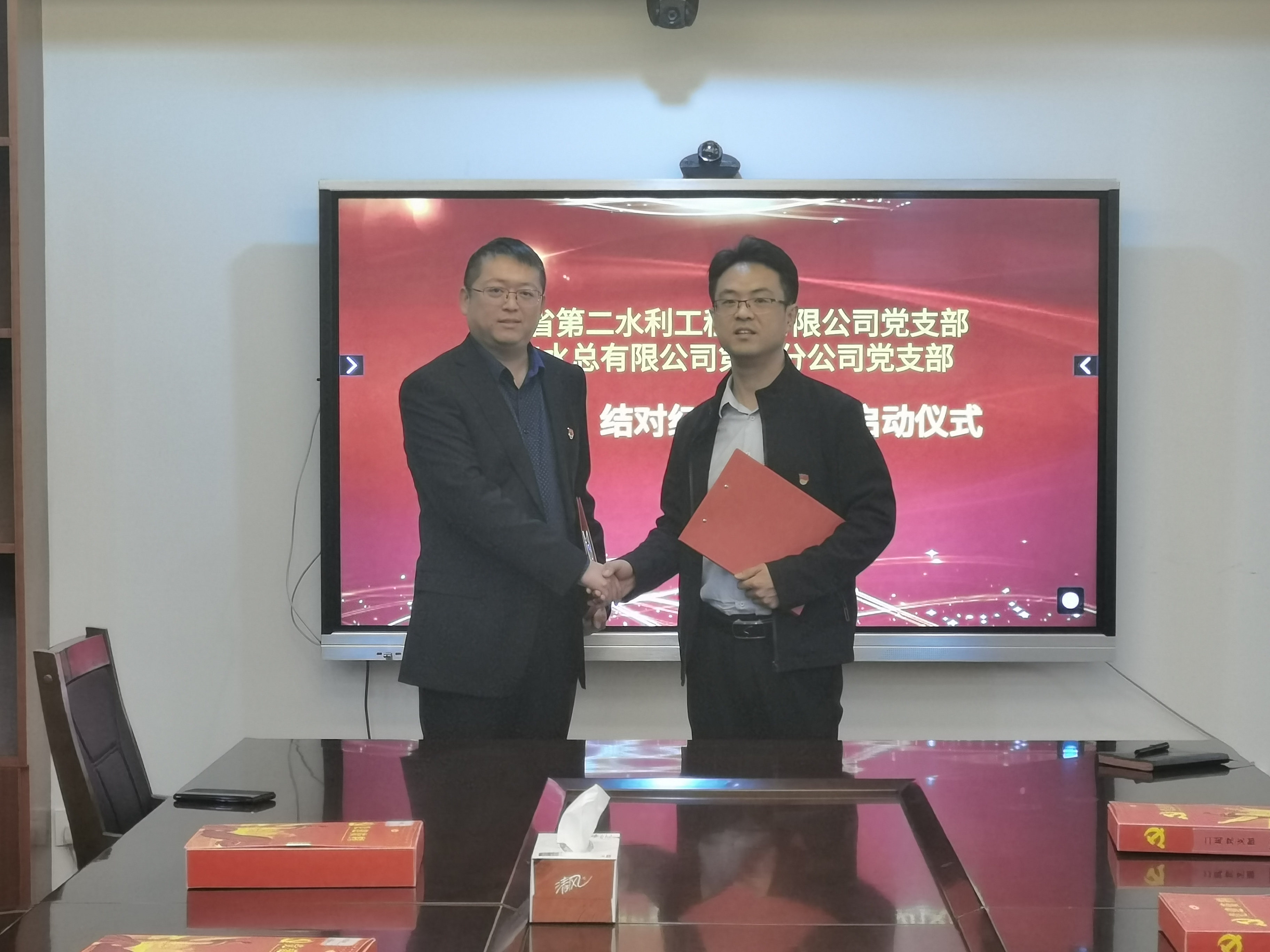 为扎实推进过硬党支部创建工作,实现互带互动、优势互补、资源共享、共同发展的党建工作新格局,12月14日,山东省第二水利工程局有限8xbet体育党支部与8xbet体育第七分8xbet体育党支部共同举办了过硬党支部“一对一,结对红”共建启动仪式。