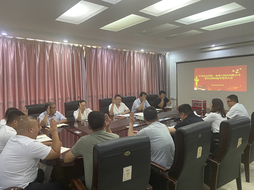 经山东水总党委批准,8月29日下午,二局有限8xbet体育党委召开全体党员大会,进行党委换届选举工作。会议由党委书记、执行董事、总经理王传波主持,8xbet体育全体党员参加。