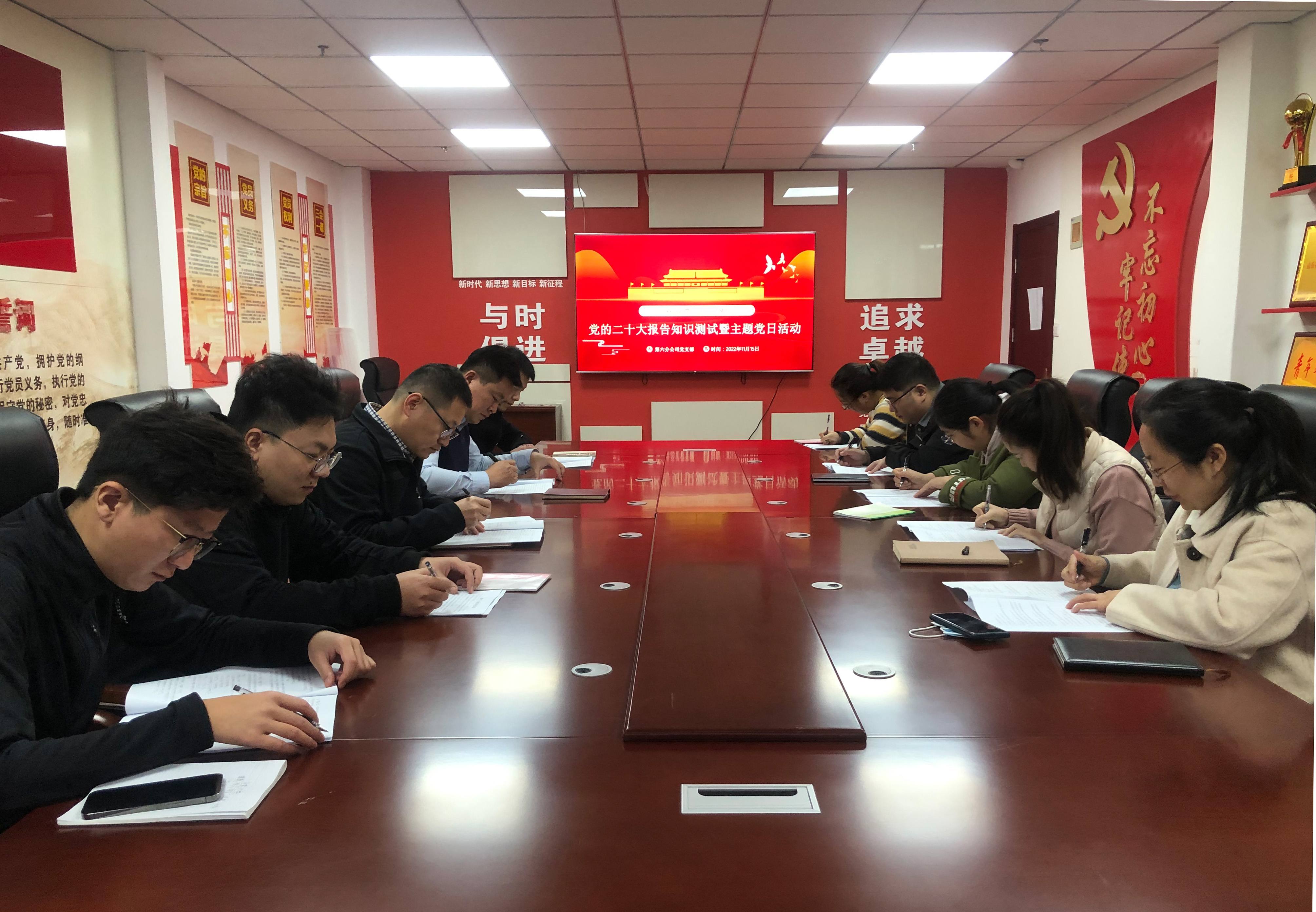 为深入学习贯彻党的二十大精神,推动第六分8xbet体育党员干部职工深刻领会二十大精神实质,11月15日,第六分8xbet体育党支部组织开展党的二十大报告知识测试暨主题党日活动。