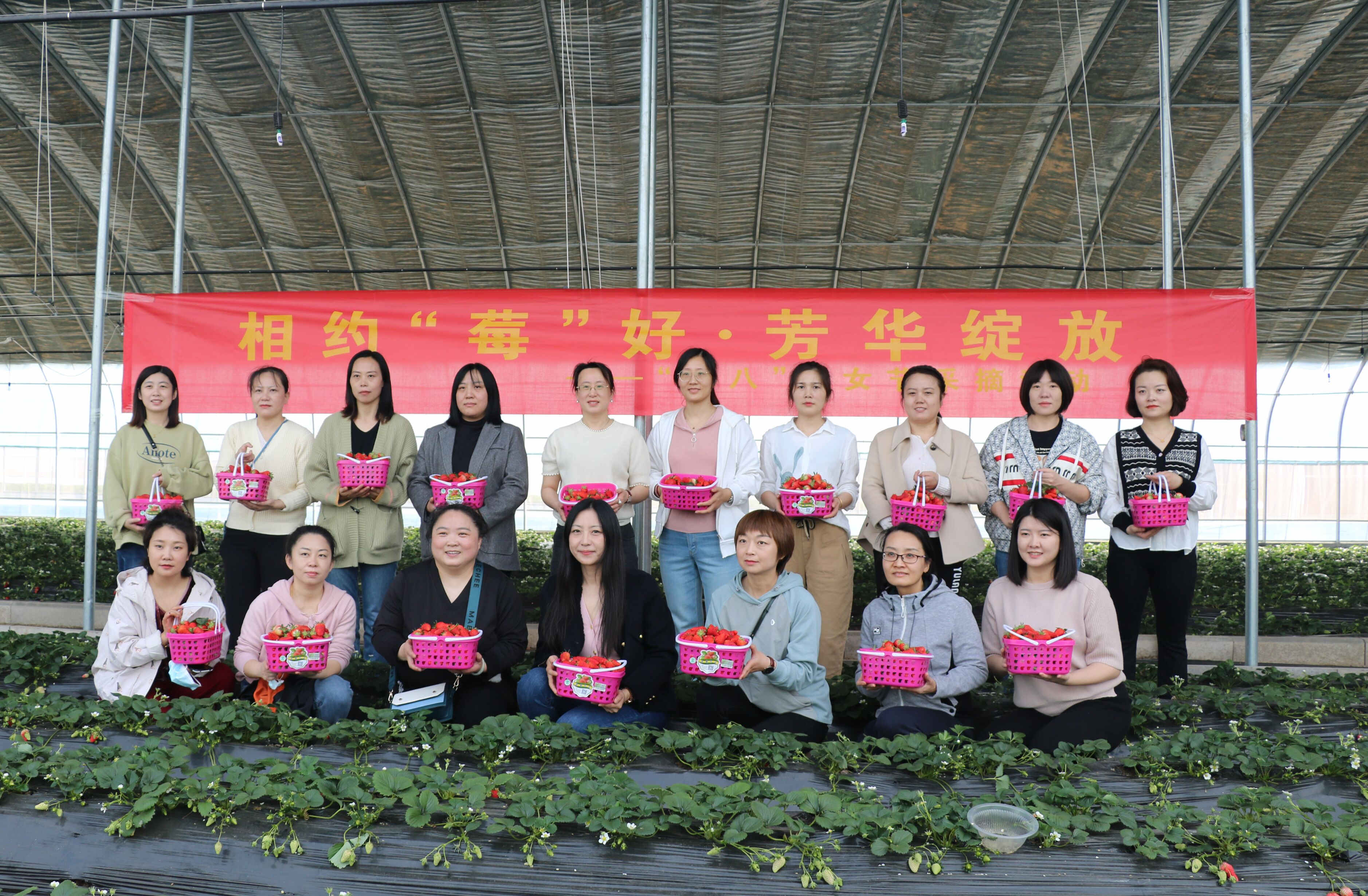 在草莓种植园里,女职工们尽情感受着春天的美好,心情格外愉悦。大棚里一片生机勃勃,翠绿的叶子、鲜红欲滴的果实、芬芳的果香让人感到春天即将到来的曼妙脚步。大家手提小果篮,沿着整齐的草莓田,化身快乐的小果农,一边采摘品尝,一边相互交流,气氛轻松活泼,体验着采摘草莓、品尝鲜果的乐趣,现场快乐与热情四溢。