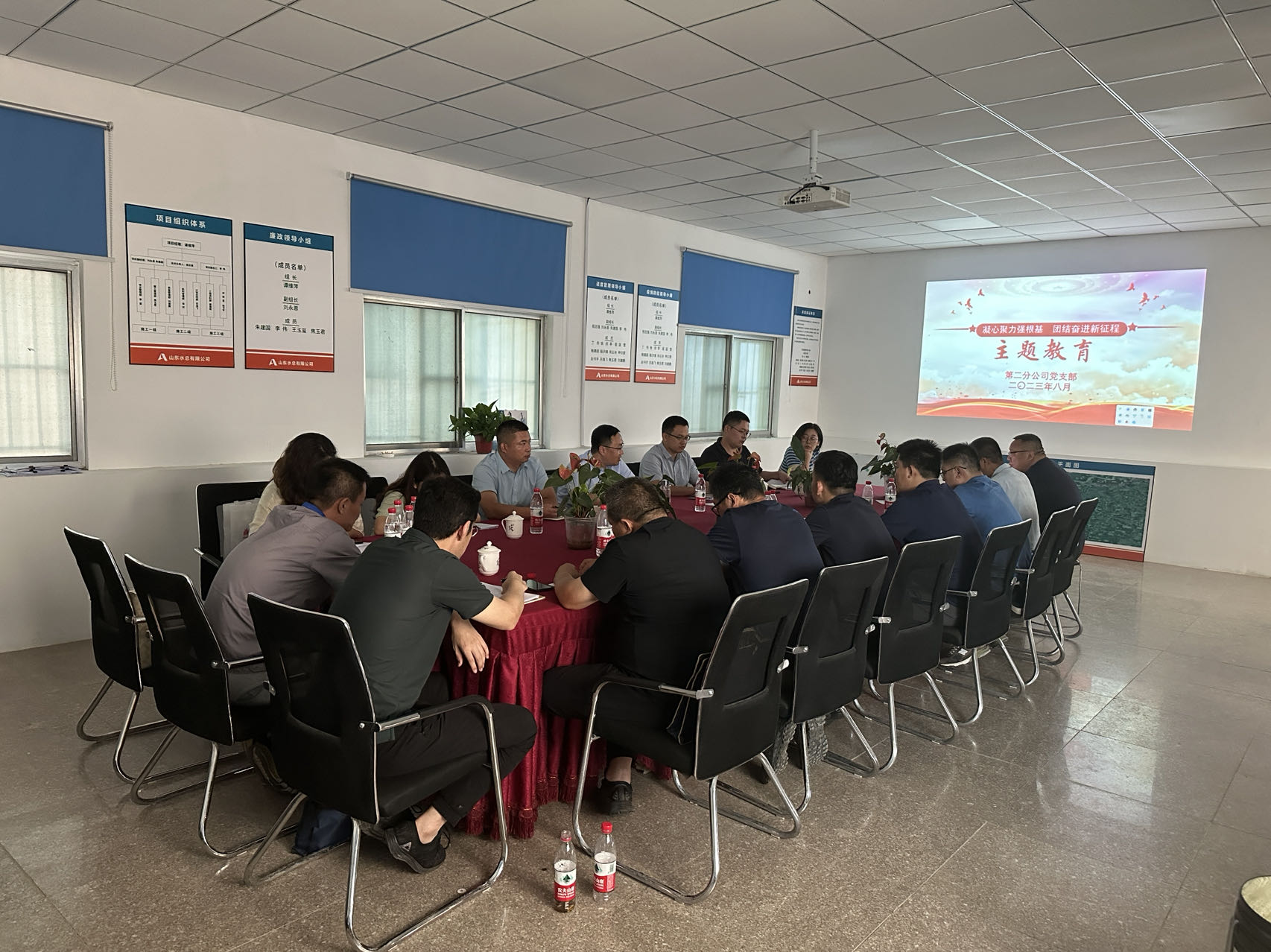 为贯彻落实8xbet体育党委关于“凝心铸魂强根基 团结奋进新征程”主题教育读书班(第一专题)的通知要求,8月13日,第二分8xbet体育党支部在平阴安防项目部组织开展主题教育读书班,第二分8xbet体育二级主管及以上人员参加学习。