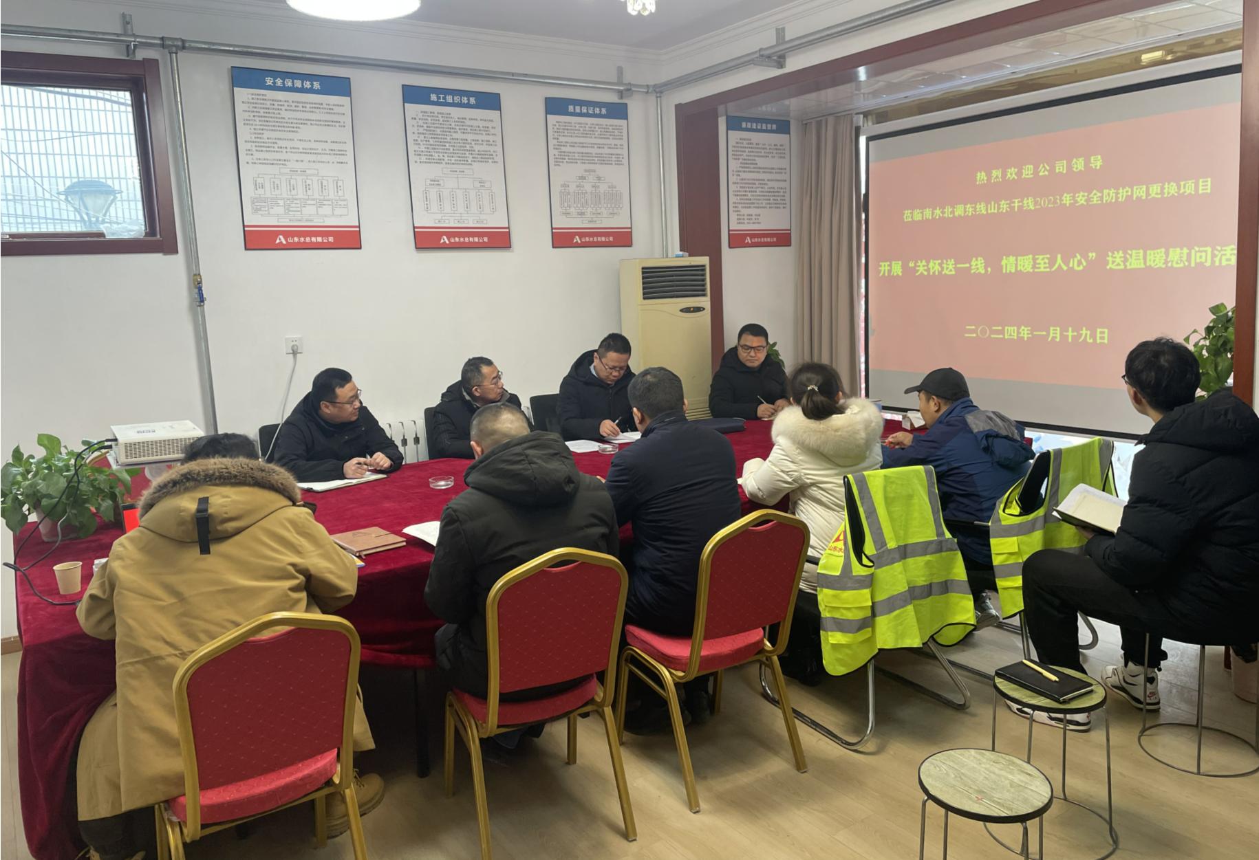 1月19日,8xbet体育党委委员、副总经理袁英杰,工程管理部相关人员一行到南水北调东线山东干线2023年安全防护网更换项目,开展“关怀送一线 情暖至人心”送温暖慰问活动