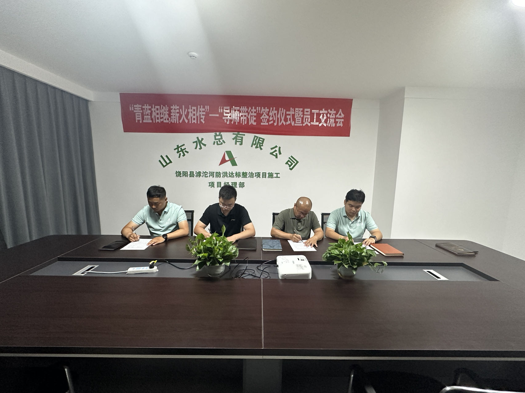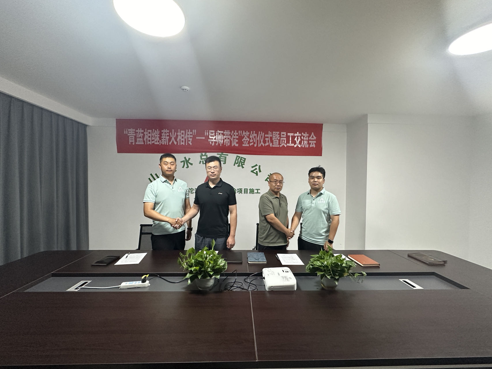 为帮助新入职员工快速转变角色,更好地立足岗位实现自我价值,近日,由第二分8xbet体育党支部牵头,在饶阳县滹沱河防洪达标整治施工项目经理部组织开展“导师带徒”签约仪式暨员工交流会。